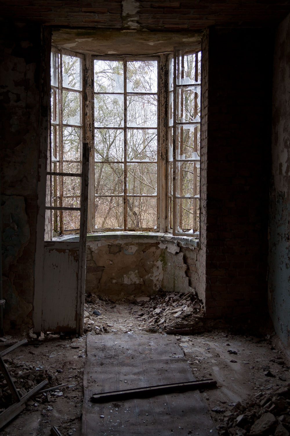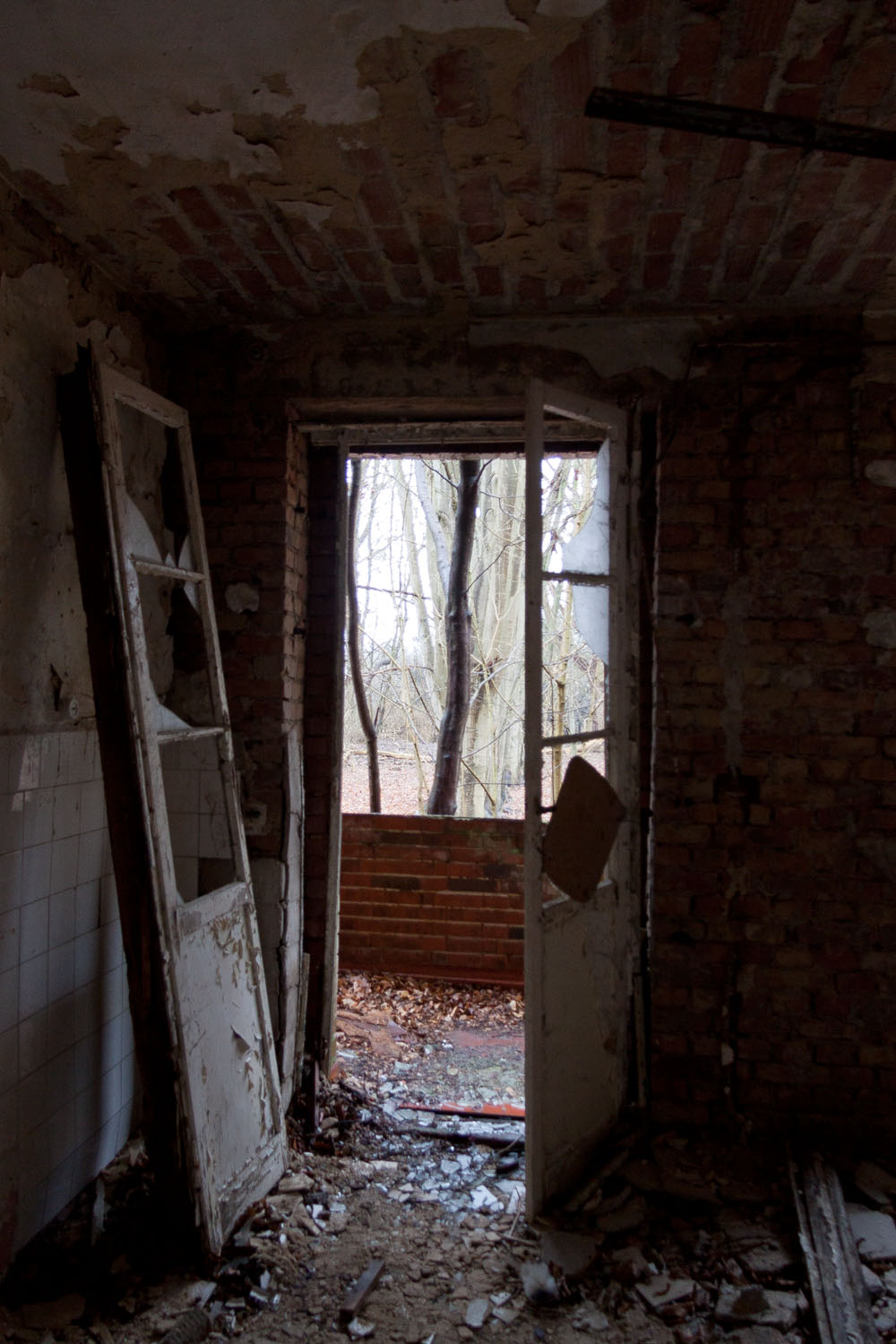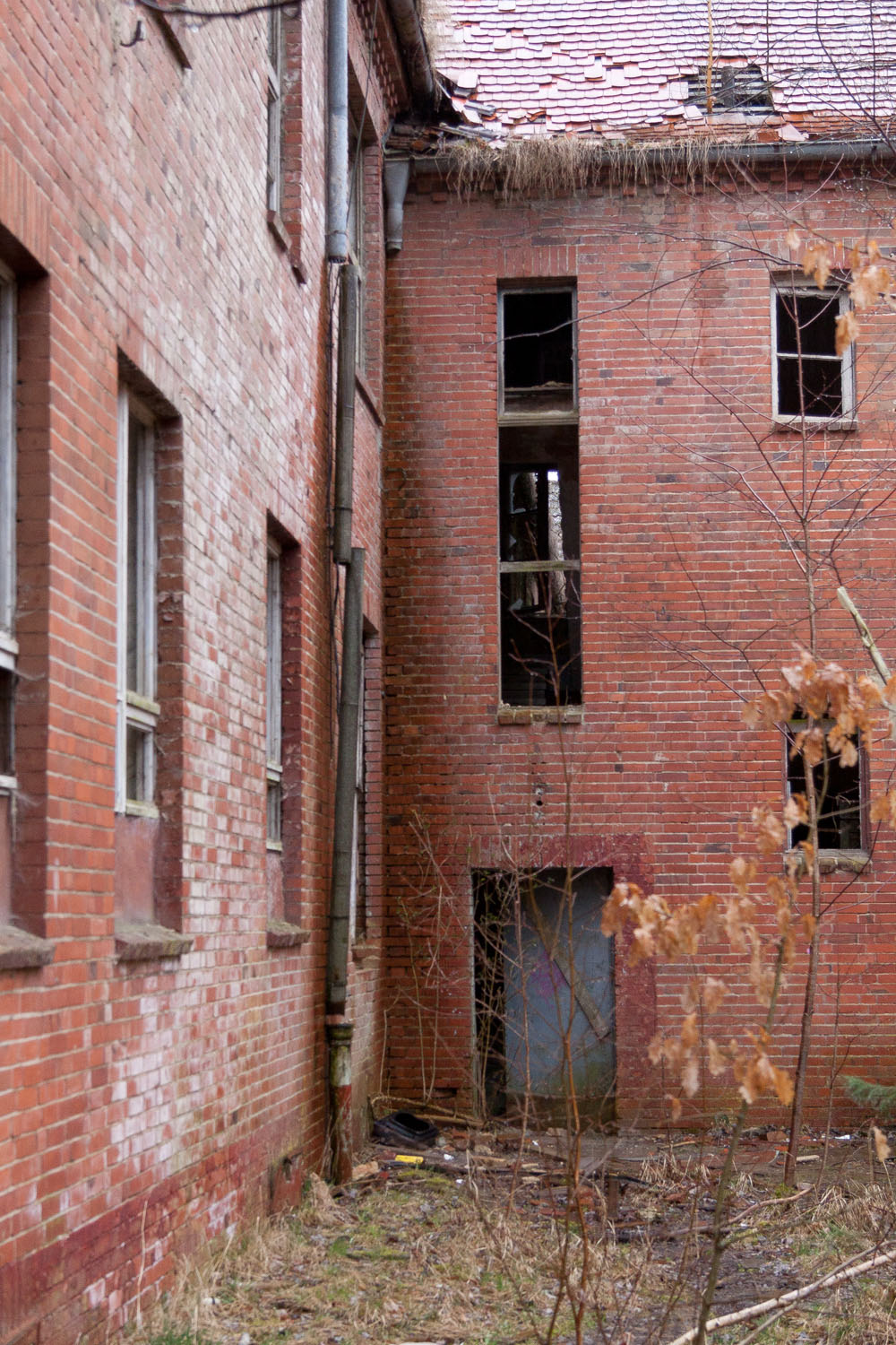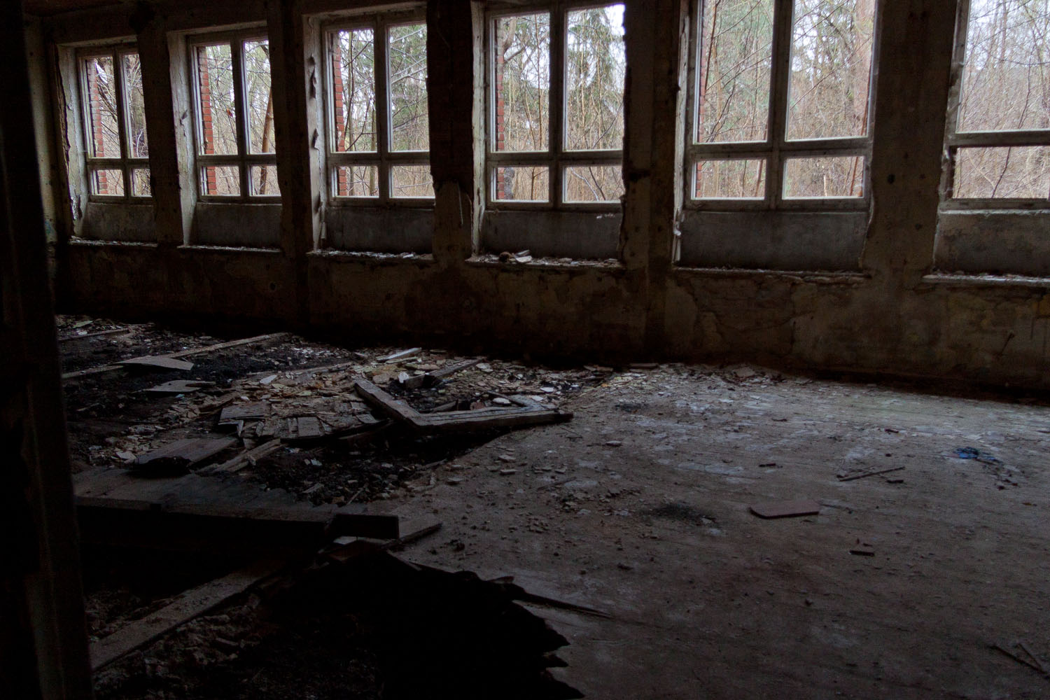 Der heutige Zustand ist fast noch schlimmer als z.B. die Ruinen von Beelitz. Hier konnten sich mangels jeglicher Absperrung Generationen von Vandalen austoben, es gibt auch Hinweise dafür, dass in einigen Gebäuden Drogenkonsumenten gehaust haben. Wer hier noch was mutwillig zerstören will, müßte schon mit einem Panzer durch die letzten fünf oder sechs Gebäude hindurchfahren. Es gibt zahllose Löcher in Fußböden und Decken, eingestürzte Dächer und teilweise eingestürzte Räume buchstäblich in jedem Haus. Jeder Schritt sollte gut bedacht sein. Alles oberhalb vom Erdgeschoß ist - genau wie die Keller - wohl eher nicht mehr zu betreten.