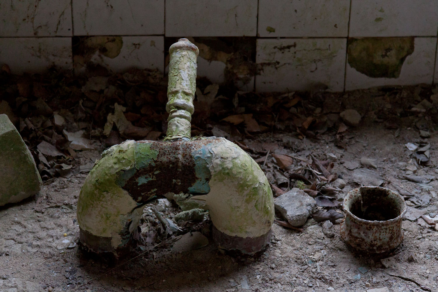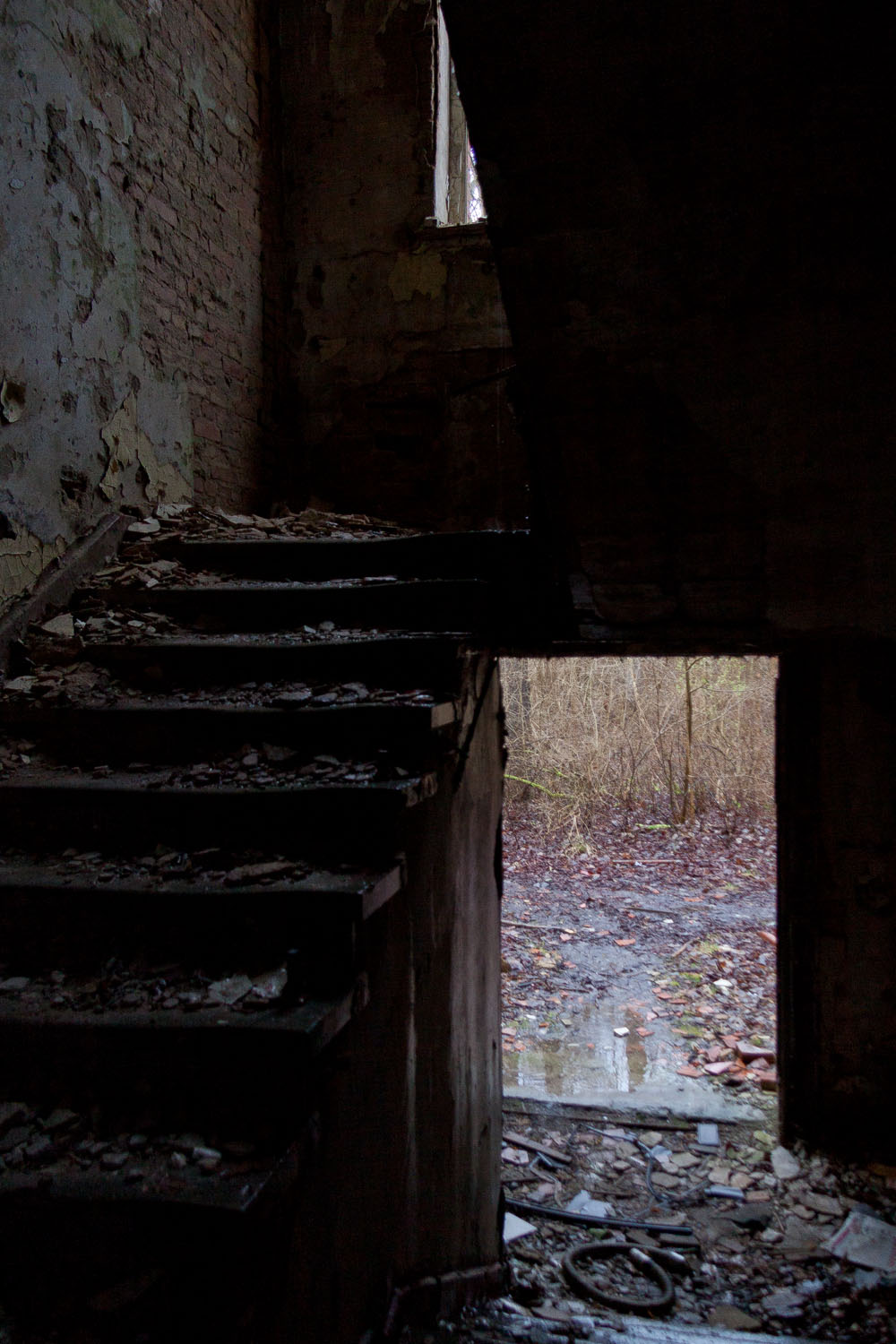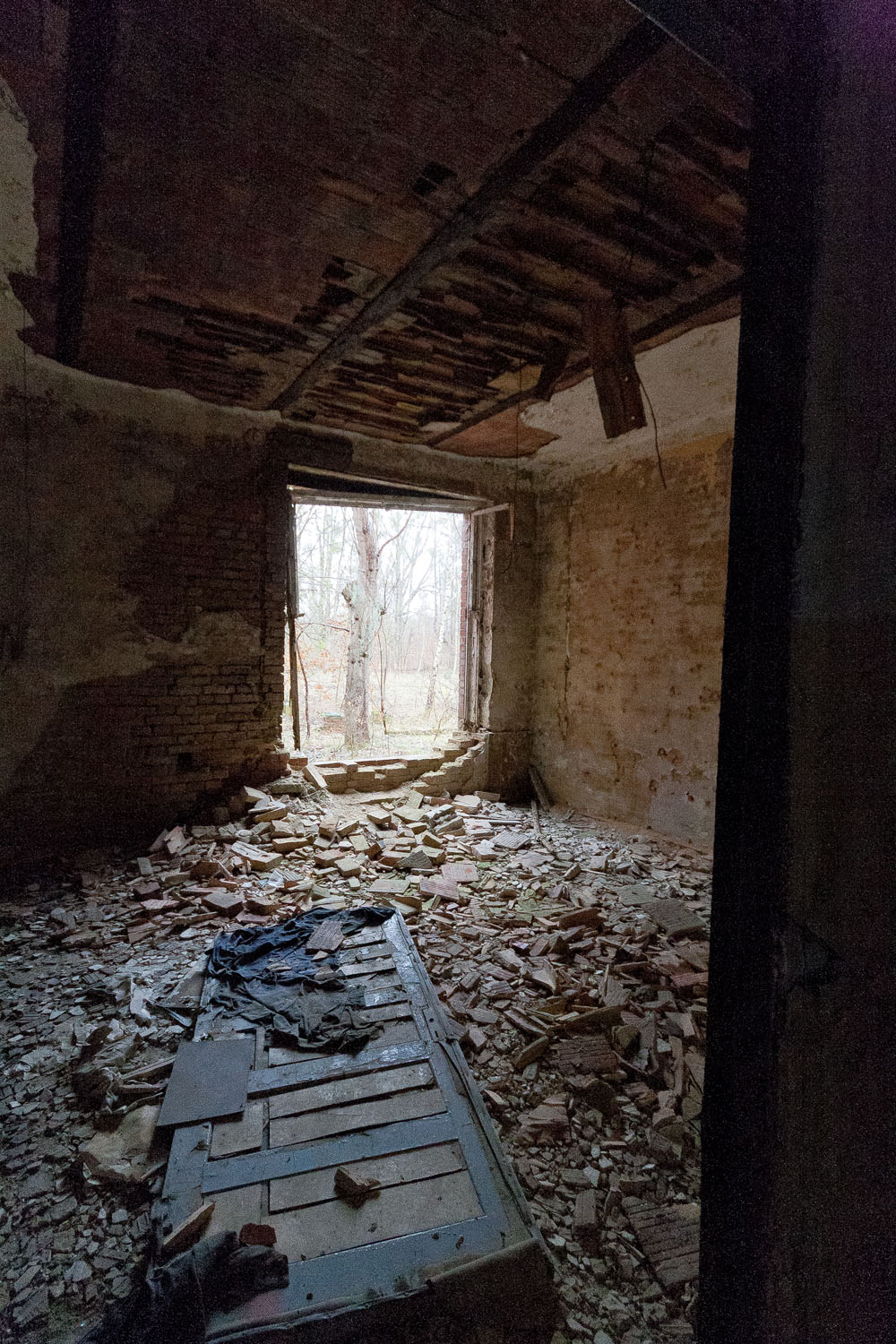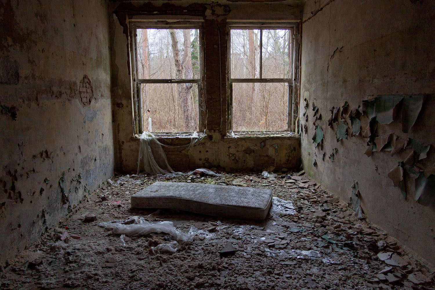 Der heutige Zustand ist fast noch schlimmer als z.B. die Ruinen von Beelitz. Hier konnten sich mangels jeglicher Absperrung Generationen von Vandalen austoben, es gibt auch Hinweise dafür, dass in einigen Gebäuden Drogenkonsumenten gehaust haben. Wer hier noch was mutwillig zerstören will, müßte schon mit einem Panzer durch die letzten fünf oder sechs Gebäude hindurchfahren. Es gibt zahllose Löcher in Fußböden und Decken, eingestürzte Dächer und teilweise eingestürzte Räume buchstäblich in jedem Haus. Jeder Schritt sollte gut bedacht sein. Alles oberhalb vom Erdgeschoß ist - genau wie die Keller - wohl eher nicht mehr zu betreten.