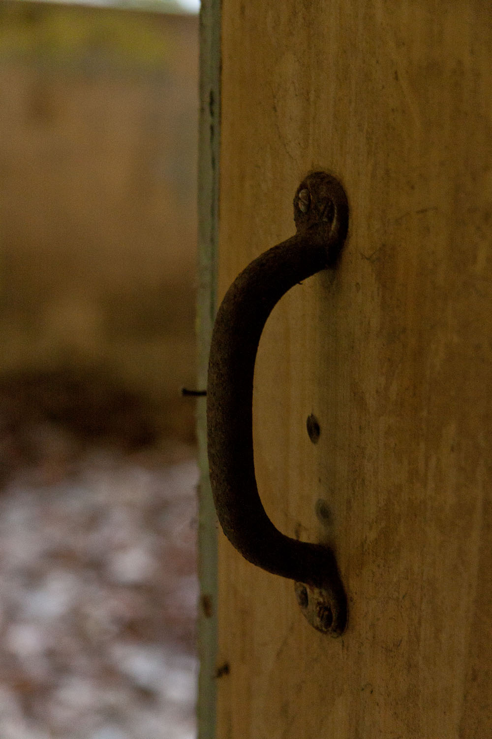 Auf einige selbstgebaute Türen kamen einfachste Beschläge.