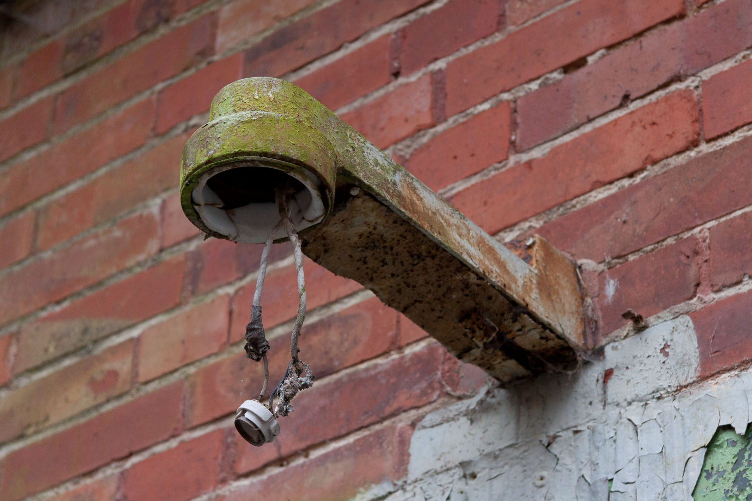 Die uralten Lampenkästen rosten aus den Halterungen.