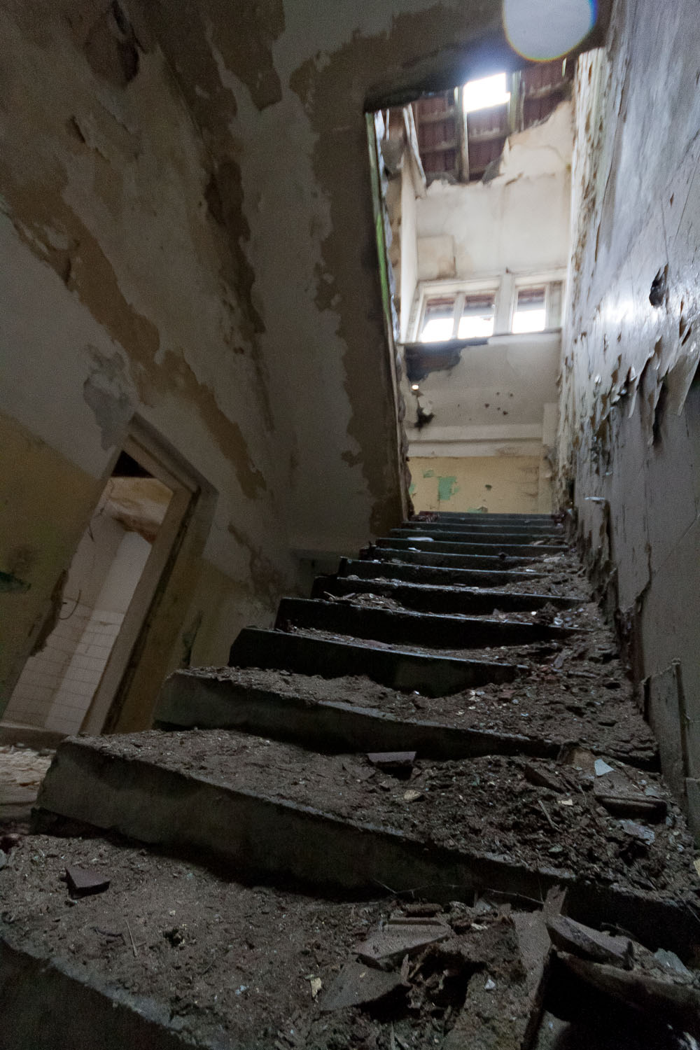 Auch hier im Treppenhaus wieder sehr viel Licht ... das Dach ist fast weg.