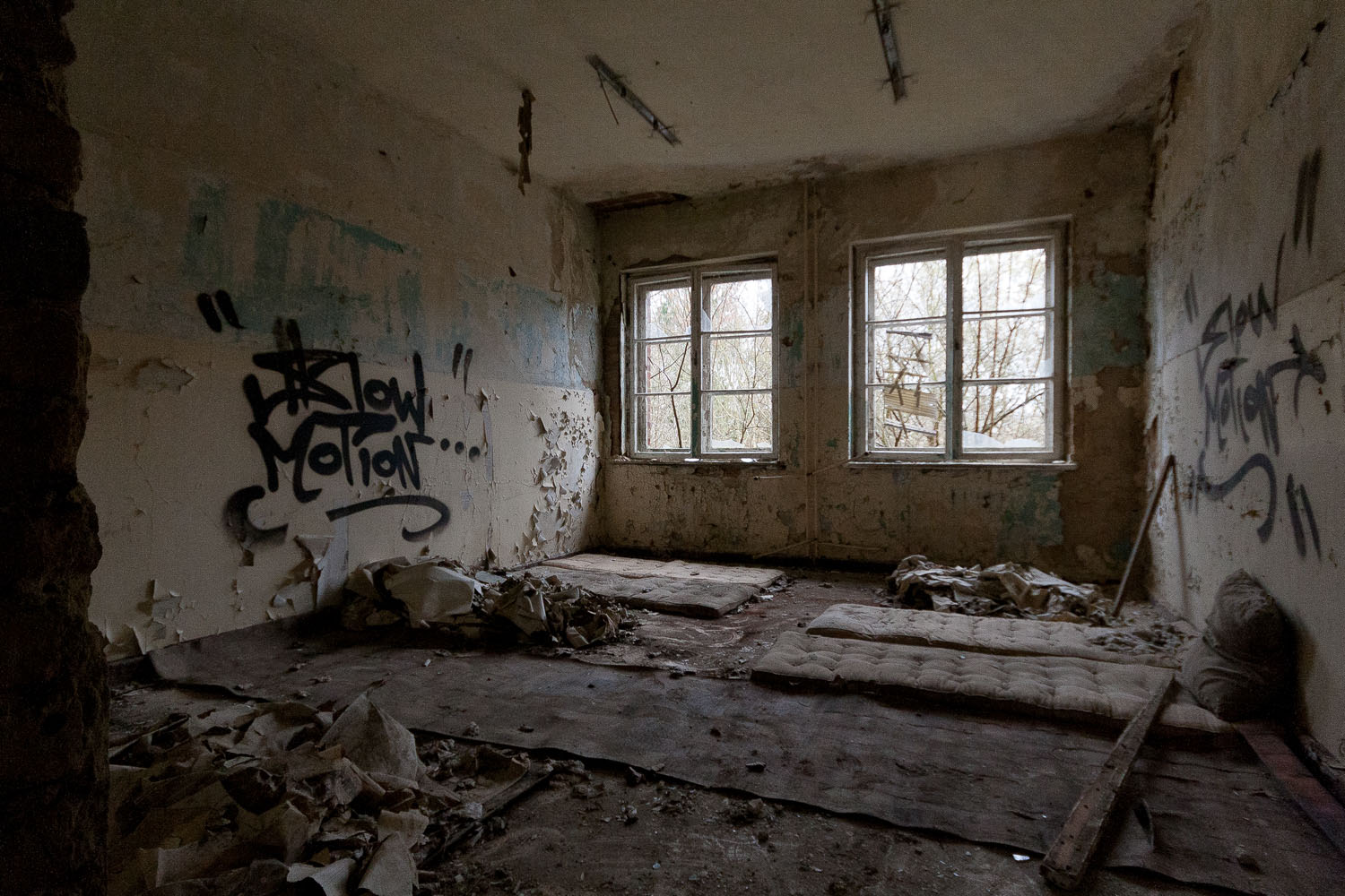 Eine Zeitlang scheinen sich hier auch Obdachlose aufgehalten zu haben. Aber ohne Fenster ist auch das hier keine wirklich brauchbare Unterkunft.