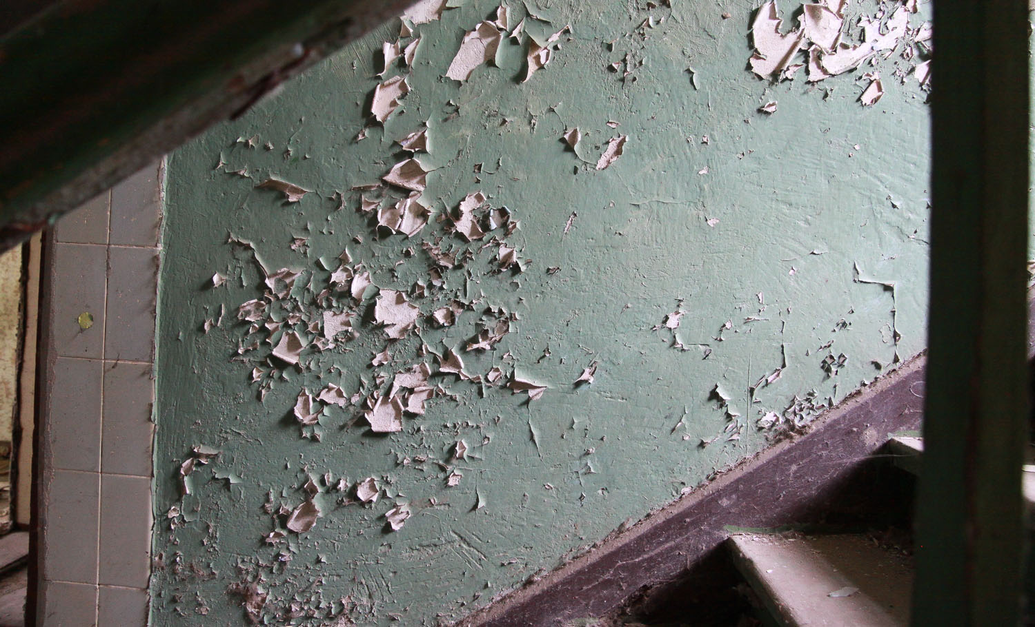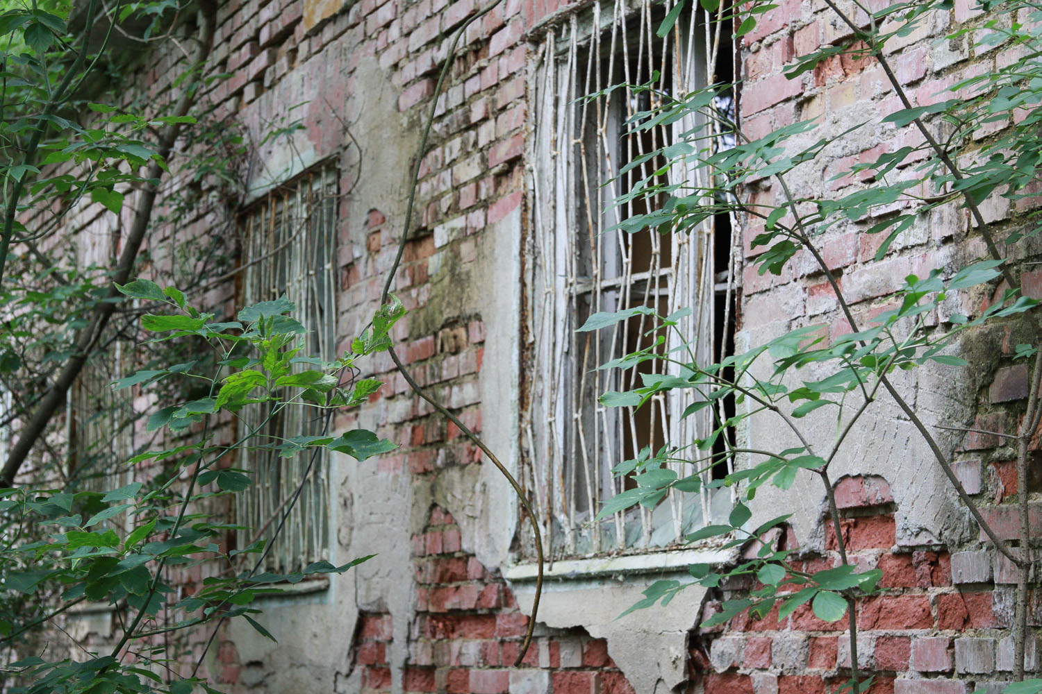 Der Putz ist schon längst abgefallen, aber die Schutzgitter halten noch.