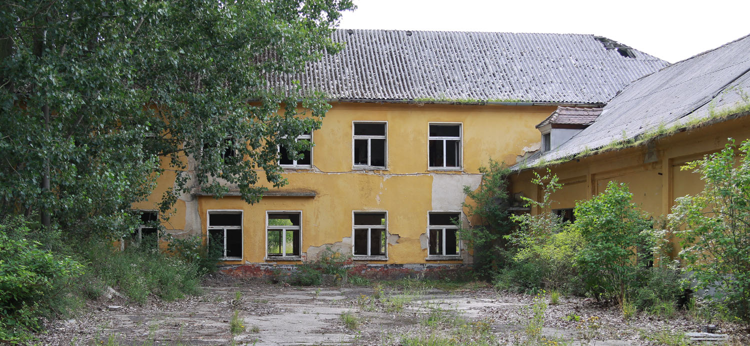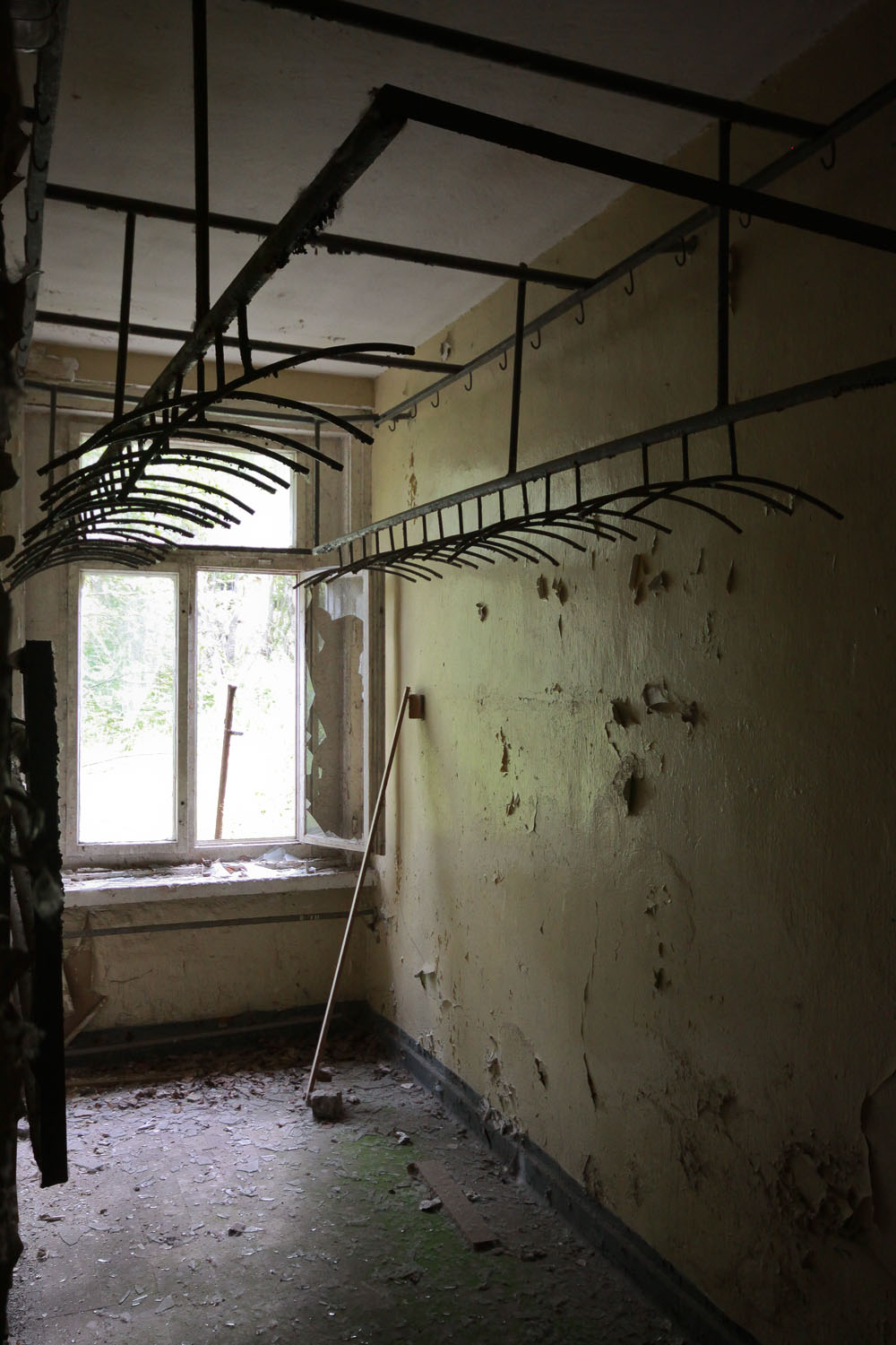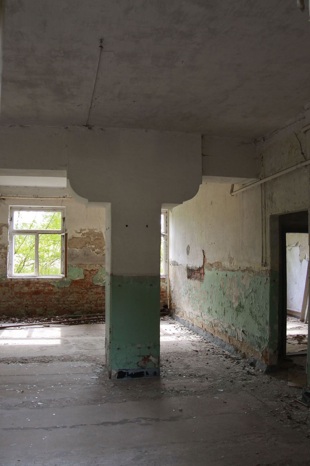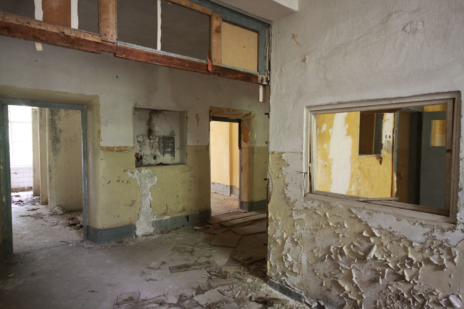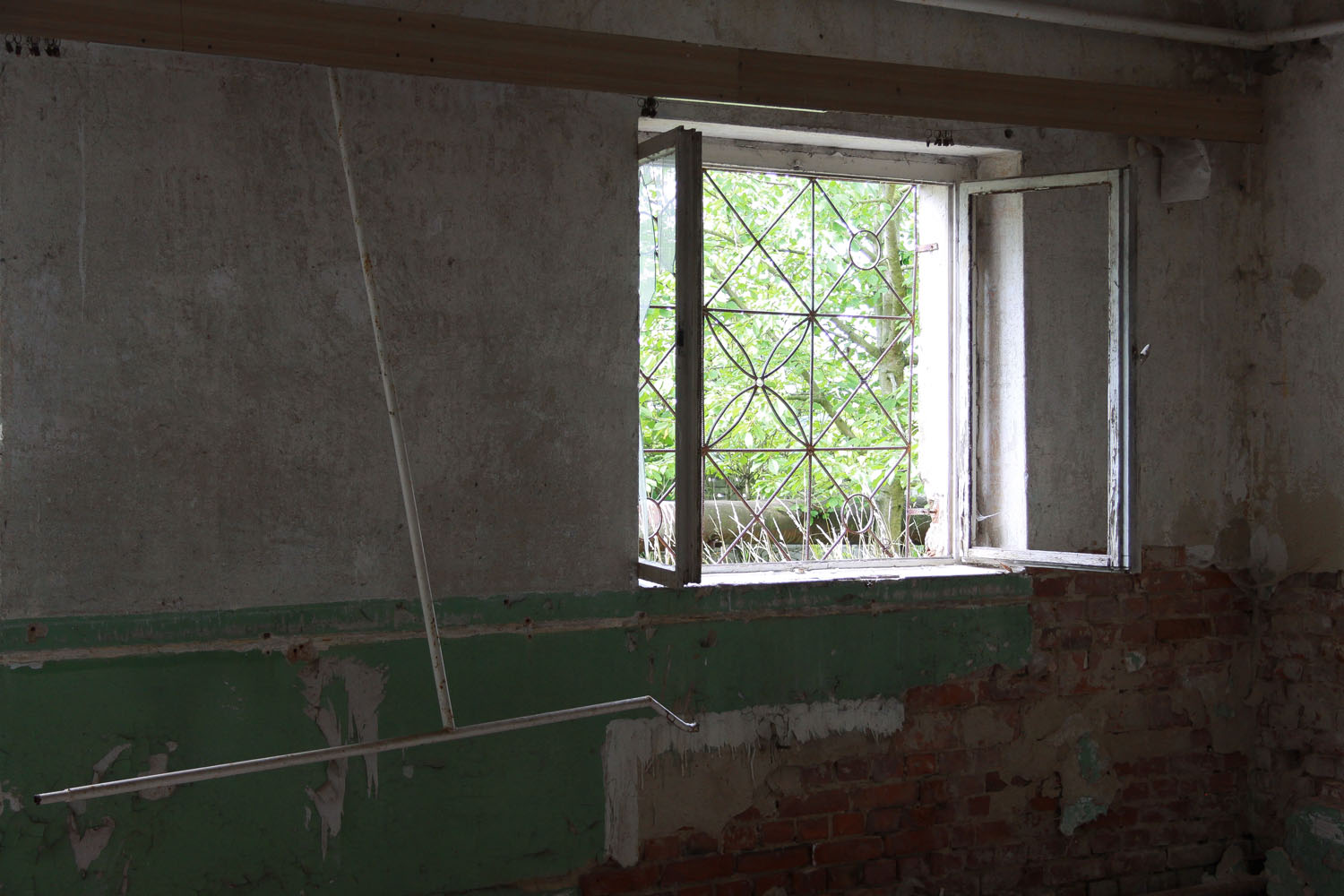 Ebenso üblich in sowjetischen Kasernen: die stabilen Schutzgitter vor vielen Fenstern in den Erdgeschossen. Hier dürften sich diebstahlsgefährdete Dinge befunden haben.