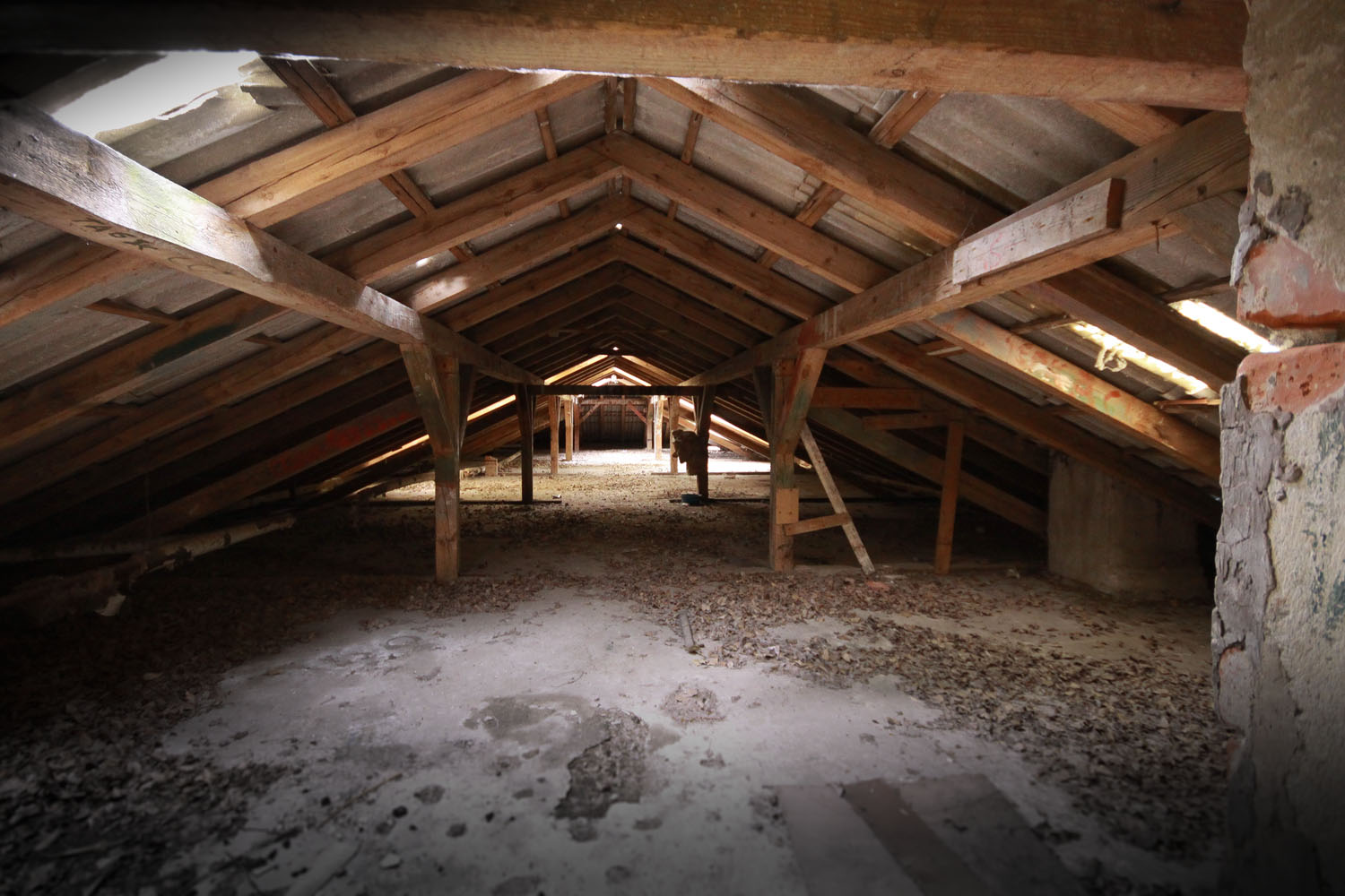 Die Dachbalken sind völlig in Ordnung: beim Abriß der Kaserne werden diese Balken sicherlich dankende Abnehmer finden.