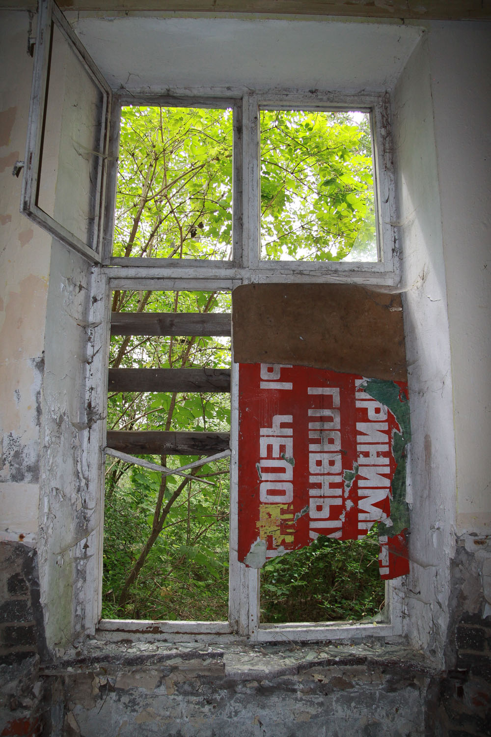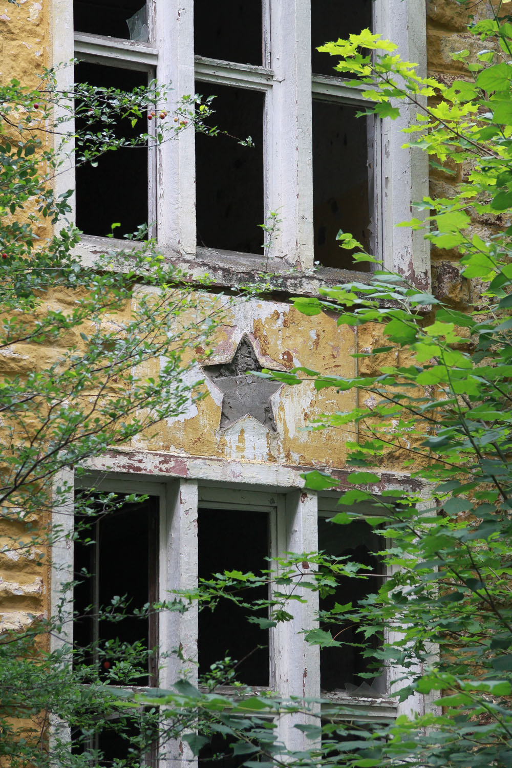 Der Sowjetstern wurde hier selbst angefertigt und über ein Fenster geschraubt.